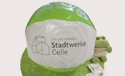 Beliebt bei Groß und Klein ist unser Stadtwerke-Wasserball. Ob im Freibad oder am Meer.