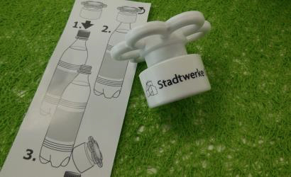 Ganz einfach die Flasche mit dem praktischen Stadtwerke-Drehverschlussöffner öffnen.