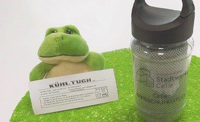 Unser Maskottchen „Fiete“ ist ein Plüschfrosch, welcher im unteren Teil die Funktion als Bildschirmreiniger durch Mikrofaser hat. Somit kann Fiete zum Reinigen von Bildschirmen wie z. B. TV, Smartphone, Tablet, etc. verwendet werden.