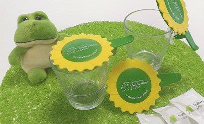 Die Stadtwerke-Glasabdeckung in Blumenform ist ideal für den Sommer um lästige Fliegen oder Bienen vom Getränk fernzuhalten. Einfach die Stadtwerke-Glasabdeckung auf das Glas stecken und Ihr Getränk ist vor lästigen Insekten geschützt. Die Glasabdeckung passt auf alle gängigen Glasgrößen.