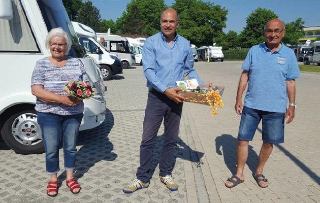 Karin und Manfred Kölling hat es getroffen. Sie sind die „25.000ste Stellplatzbuchung“. Bad Münder ist ihre Heimatadresse, aber unsere schöne Residenzstadt hat es ihnen angetan. Celle ist eines ihrer Lieblingsziele. Das muss sich natürlich noch ändern, ein Upgrade zum Lieblingsziel ist angesagt. Unser Chef, Thomas Edathy, hat es sich nicht nehmen lassen, persönlich ein kleines Präsent zu übereichen.