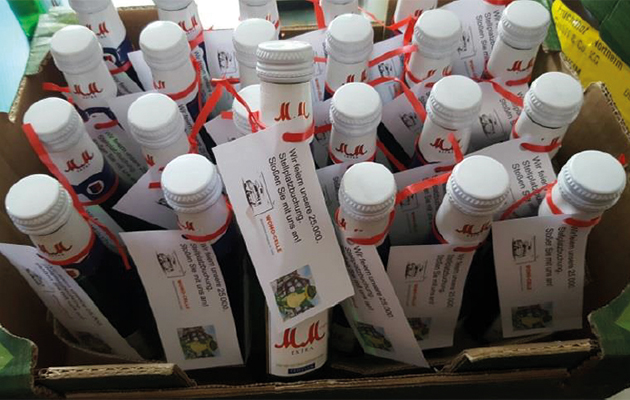 Für die anderen Gäste auf dem Platz, komplett besetzt natürlich, gab es ebenfalls Sekt in der Zwergausgabe, zum Anstoßen auf das Ereignis.