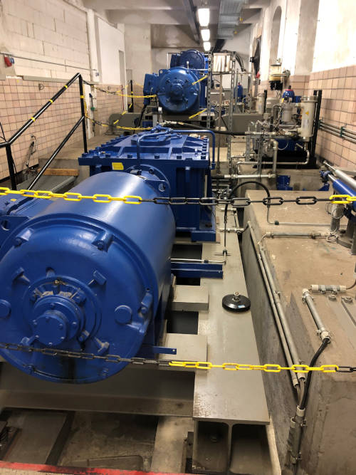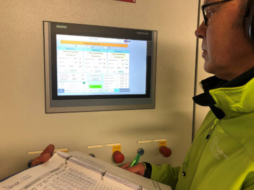 Mitarbeiter Hans-Friedrich Nölke kontrolliert die technischen Anlagen. Die drei Turbinen haben im Januar über 300.000kW/h produziert und in das öffentliche Stromnetz eingespeist.