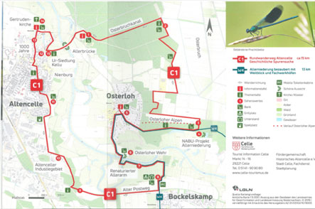 Eine Besonderheit ist die Ev.-luth. Gertrudenkirche zu Altencelle. Neben vielen anderen Dingen ist der Altaraufsatz, ein halbes Jahrtausend alt, besonders spannend. Bis zu dieser Kirche können wir locker radeln, es gibt einen tollen Weg an der Aller entlang. Sobald die Einschränkungen für das Gruppenradeln wegfallen, kann es gemeinsam losgehen. Wir zeigen den Weg, sprechen mit der Küsterin und werden uns auch noch etwas einfallen lassen. Wer möchte, der fährt aber den Rundweg einfach weiter.