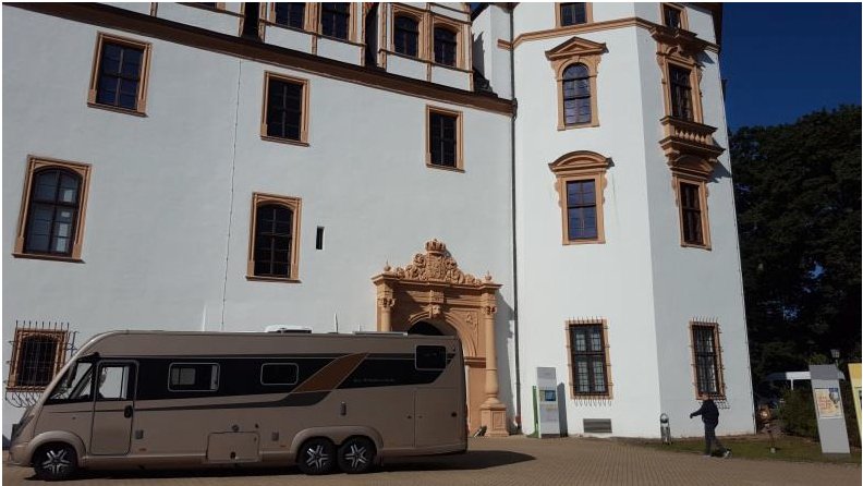 Wir brauchten eine schöne Aufnahme für unseren neuen Wohnmobil-Stellplatz-Flyer. Celle und Schloss und Wohnmobil passen eben gut zusammen. Mal sehen, was der Profi daraus gemacht hat.