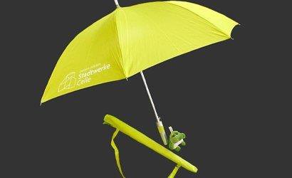 Der hochwertige Stadtwerke-Regenschirm besticht durch seine schöne grüne Farbe. Der Schirm ist robust und hat zusätzlich eine Tragetasche dabei. Somit kann der Regenschirm auch einfach getragen werden.