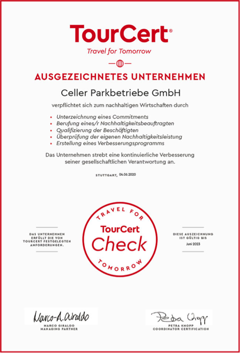 Gelebte Nachhaltigkeit - wir tragen den TourCert Check!